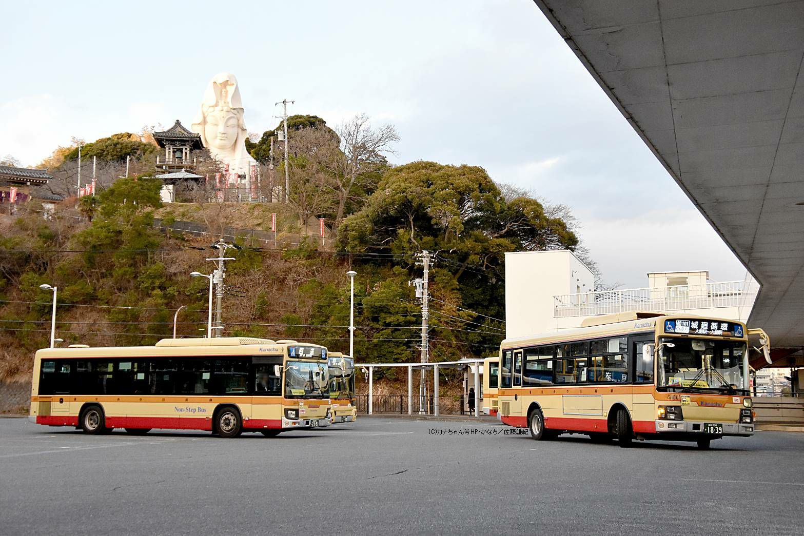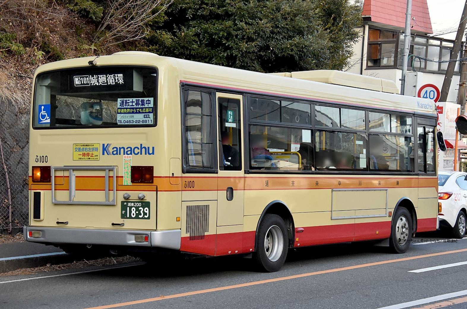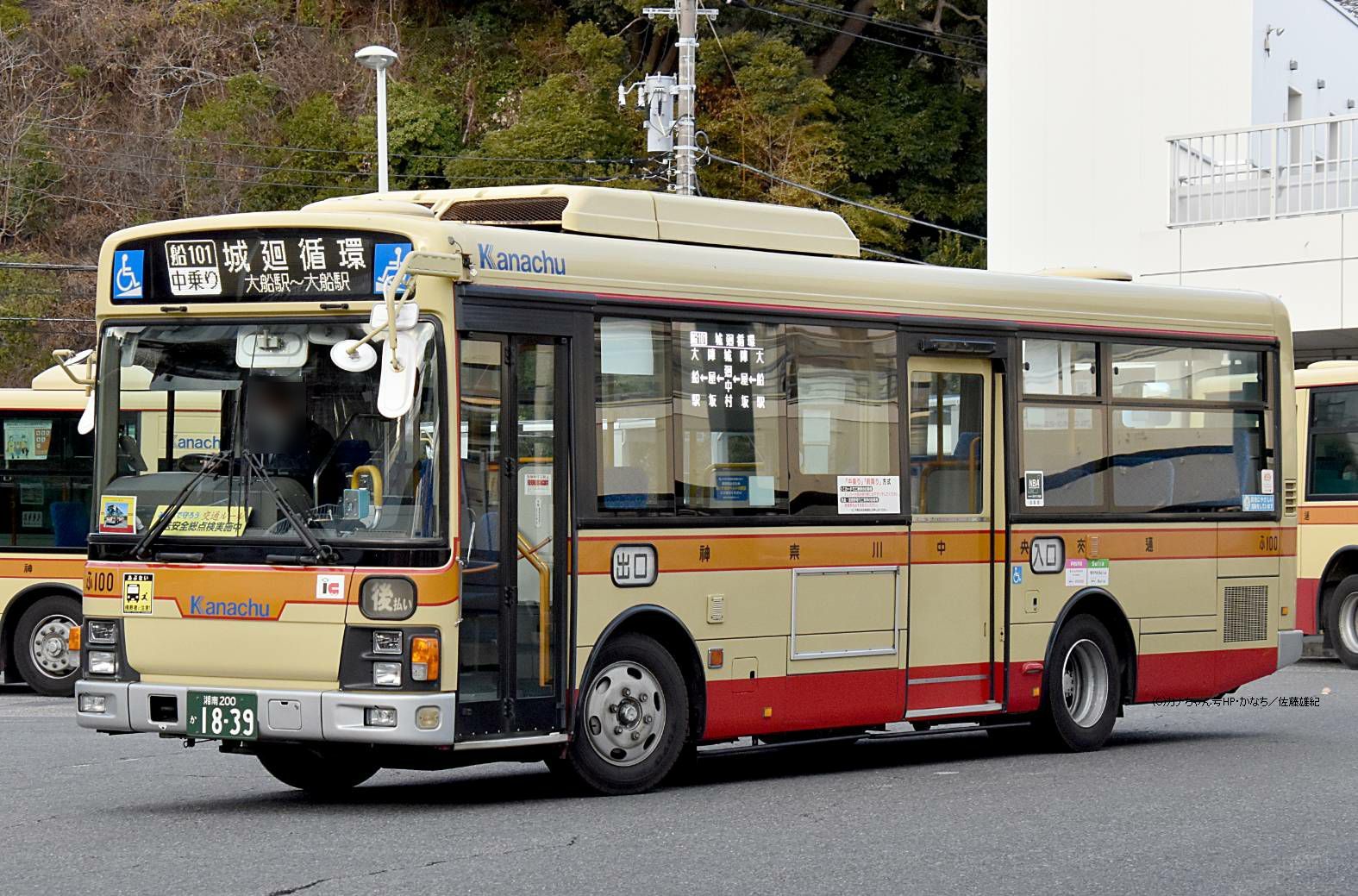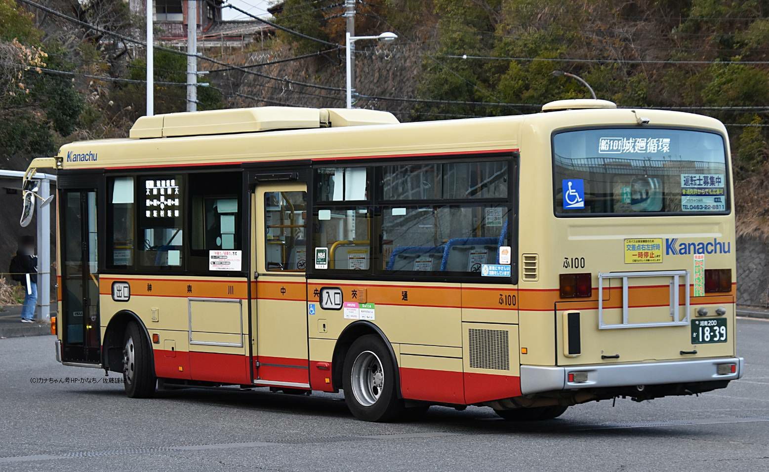 2007年10月投入のPDG-LR234J2(ふ100)です。 藤沢営業所の中型車はエルガミオ13台が在籍し、内写真のPDG-代は3台のワンステップバスが在籍しています。2017年2月に茅ヶ崎から転入した1台で当時は神奈川中央交通東直属の「ふ603」でした。新製当初は相模原に在籍し神奈中のPDG-代エルガミオでは初となった車です(元さ0111→ち66→ふ603)。2017年12月16日の会社再編で委託車へと移っています。 写真は大型の代走で大船駅西口へやってきたときの姿で船33系統で藤沢駅〜関谷インター〜大船駅線のほか、船34系統の南岡本線を往復しました。撮影 佐藤雄紀様 |