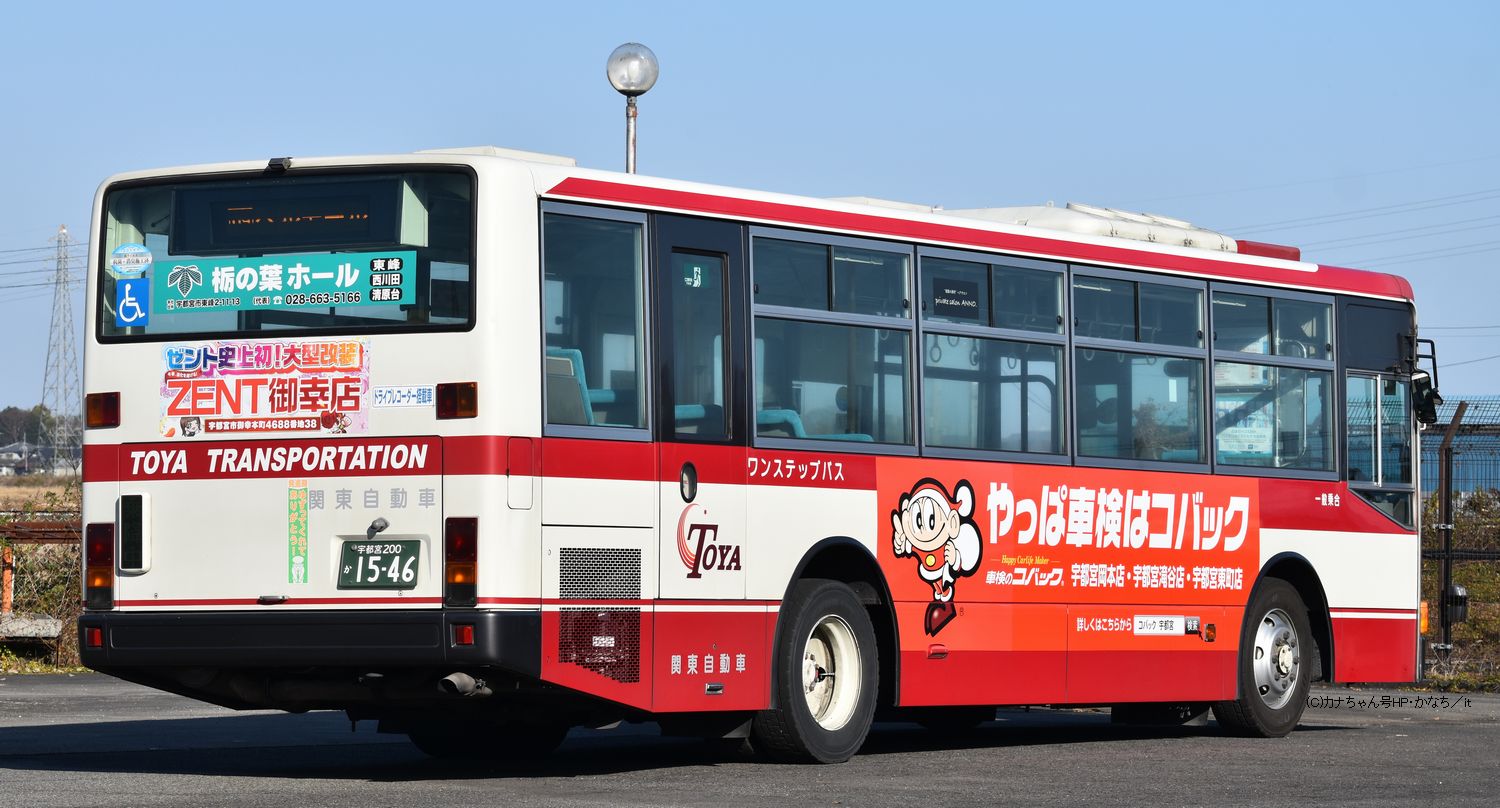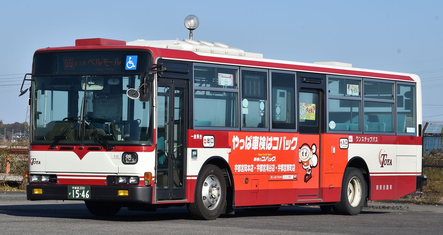 2005年式の三菱PJ-MP35JMです。 関東自動車へ移ったPJ-代の中では1枚目の宇都宮200か1656「あ172」が最も早く移籍した車で2019年11月に登録されました。 2枚目は宇都宮200か1674「も162」でこちらは2020年6月に登録、PJ-MPワンステップは7台が在籍します。 それぞれハローワーク「ハロートレーニング栃木」や、栃木県保健福祉部健康推進課「健康長寿とちぎ」のラッピングが貼られています。撮影 kbb12345様